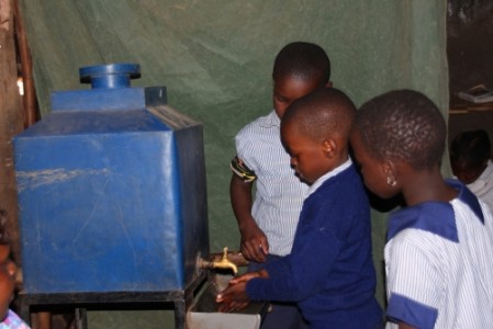Zudem wurde eine Handwaschanlage gekauft, die mit dem sauberen Wasser aus dem Tank befüllt wird. So können sich die Kinder vor dem Essen und nach dem Toilettengang die Hände waschen, was eine deutliche Verbesserung der hygienischen Verhältnisse darstellt.